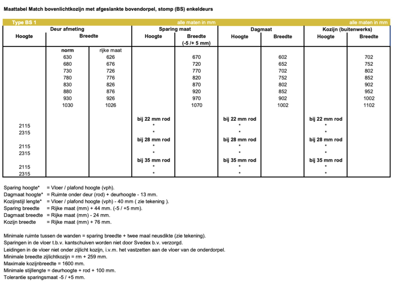 | Algemeen | Producten van Svedex zijn KOMO-gecertificeerd, KOMO® attest met productcertificaat Nr 20734. Monteren en afhangen van deuren en kozijnen volgens voorschrift. |